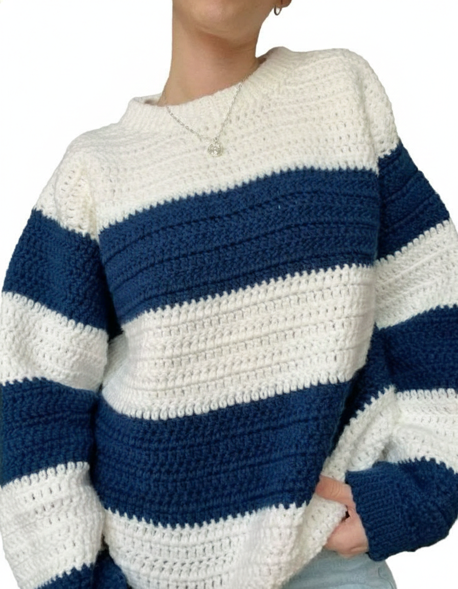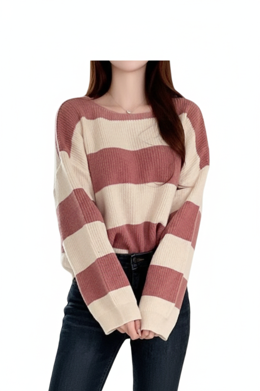 Elevate your seasonal wardrobe with our Ethereal Stripe Ribbed Knit Oversized Sweater. This piece is the perfect blend of cozy comfort and effortless style, making it a must-have for those crisp autumn mornings and chilly winter days.